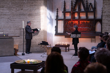 Burkard Wehner (Gesang, Rotta, Surpeti) und Normisa Pereira da Silva (Bassflöte, Gesang, Cup-Bells, Surpeti) erforschen seit 10 Jahren die Musik der Hildegard von Bingen und spielen und singen dieses Programm.