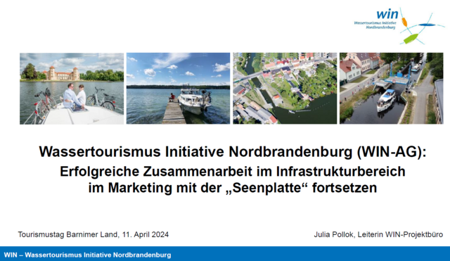 Die Präsentation "Wassertourismus Initiative Nordbrandenburg (WIN-AG): Erfolgreiche Zusammenarbeit im Infrastrukturbereich im Marketing mit der "Seenplatte" fortsetzen" von Julia Pollok, Leiterin WIN-Projektbüro, kann hier heruntergeladen werden.